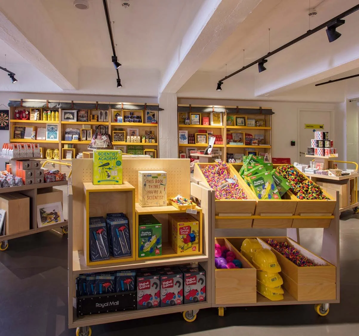 We were selected to tender for the Postal Museum Retail Spaces due to our completed projects at Chester Zoo, Whipsnade Zoo, and WWT at Slimbridge which were on a similar theme to what was needed. We worked with the designers MWorldwide to create a wonderful space that is not only a retail space but has references to the heritage of the Postal Museum and everything is moveable so the area can be cleared for evening receptions.
